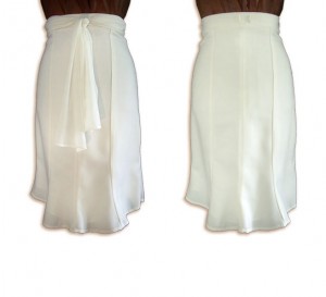 Deutsche Gr. 40 – midi Rock aus feiner 100% Wolle kremig-gelb. Feiner Saumansatz aus Chiffon Seinde. Halstuch aus Chiffon Seide: optional als Gürtel verwendbar. ZOOM: klick auf Bild